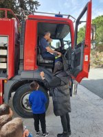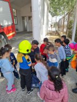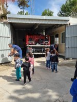 Οι πυροσβέστες μας υποδέχθηκαν με χαμόγελο και μας ξενάγησαν στους χώρους του σταθμού. Τα παιδιά είχαν την ευκαιρία να δουν από κοντά τα πυροσβεστικά οχήματα, να παρατηρήσουν τον εξοπλισμό και τις στολές που χρησιμοποιούν οι πυροσβέστες και να ακούσουν από τους ίδιους για το απαιτητικό αλλά και δύσκολο έργο τους.
